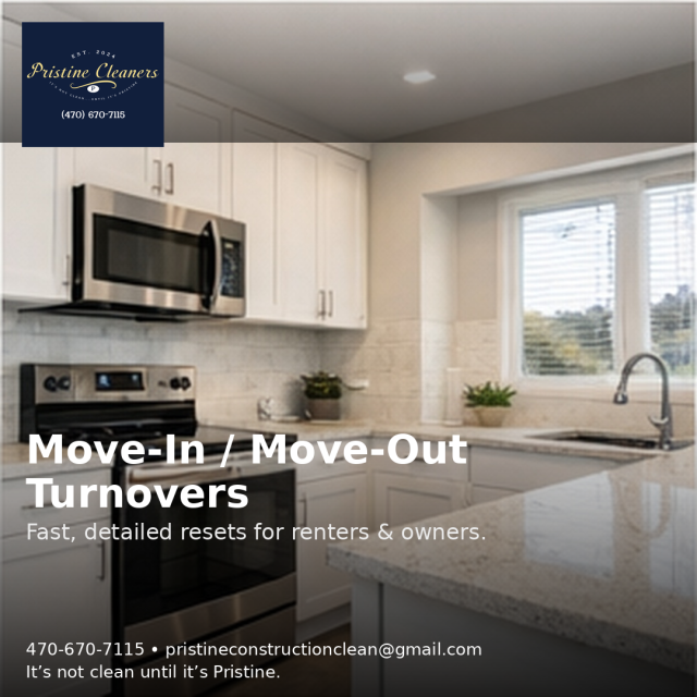 Pristine Cleaners delivers detailed, deadline-driven post-construction cleaning for general contractors, builders, and turnover teams across Gwinnett County and Metro Atlanta.