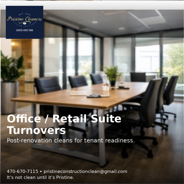 Call (470) 670-7115 or email pristineconstructionclean@gmail.com